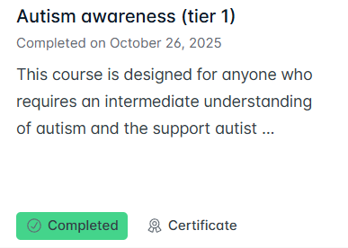 Find the course that you want to print the certificate for - it must be showing as 'Completed'